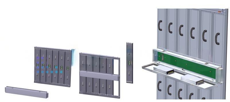 Lightweight and integrated rotary lock pin design, realize the rear and front install and maintenance,Simplify operation, and reduce construction difficulty. Remove the panel from the front side and than remove the cover plate than the power & control box can be maiontained easily