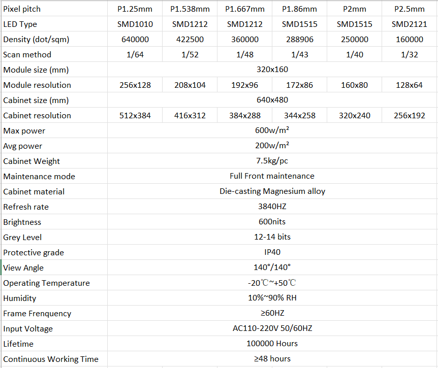 The cabinet size is 640*480mm. Specially designed for a variety of 4:3 and 16:9 LED large screens.