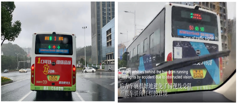 For example, in Changsha city, the smart synchronize signal screen on the back window, allows the car driver behind them to know the traffic status easily, and avoid running red lights by accident due to obstructed vision.