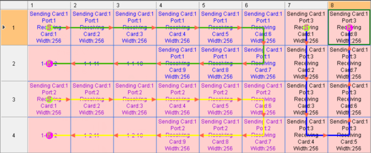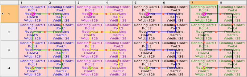 This case tells us the LED screen connection should both take the number of cabinets each port can load and the connection logic into consideration. Please remember the area for one port should be completely rectangular.